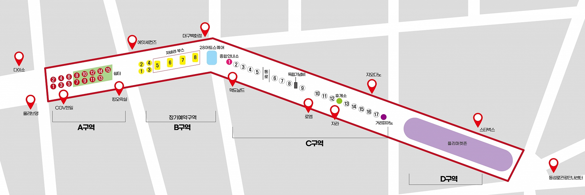 - 장 소 : CGV한일 - 28아트스퀘어 - 지오다노 사거리 - 동성로관광안내센터
